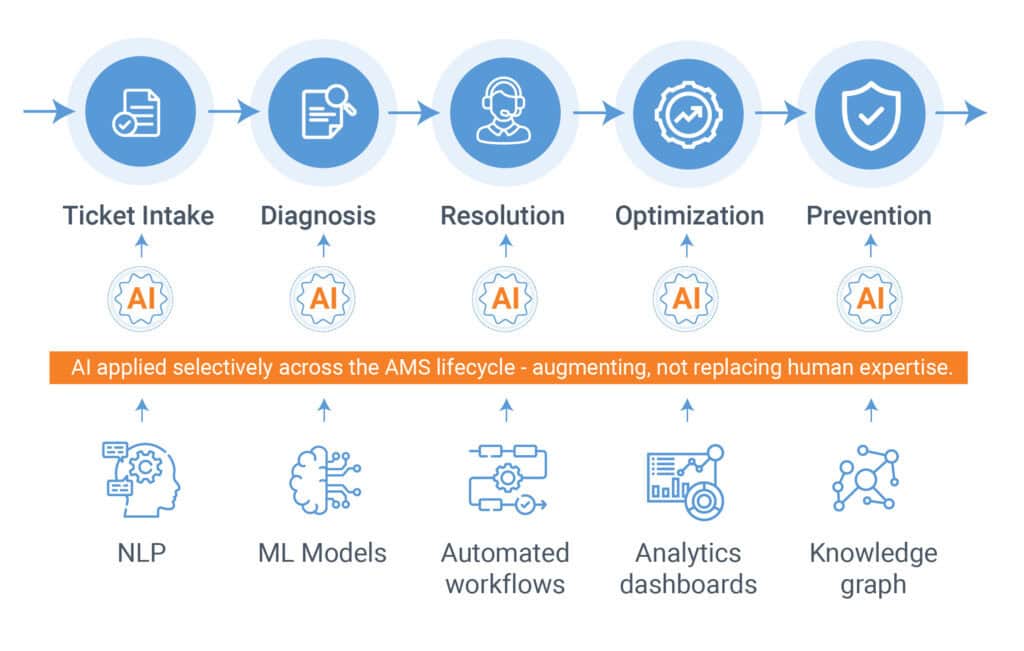 This is not automation for its own sake. It is intelligence applied selectively across the AMS lifecycle to support better outcomes.